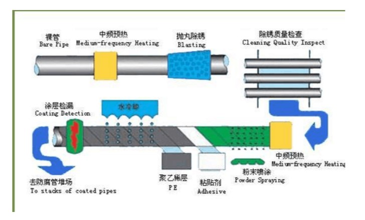 3PE防腐鋼管生產線可應用于鋼管的單層FBE、雙層FBE、雙層PE、雙層PP及3PE防腐作業。