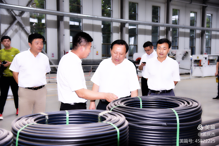 9月16日,市政協副主席、民主建國會濟寧市委主委李克學,民建市委秘書長劉訓闊等蒞臨山東聚合管業公司視察會員企業“六穩”“六!惫ぷ鏖_展情況。公司董事長馮學勤介紹公司當年投資、當年生產并當年交稅情況。民建市中支部主委付大波、任城支部主委鄭長建陪同視察。